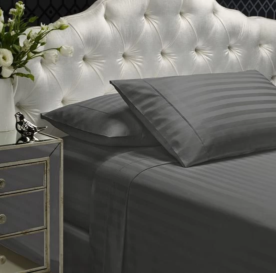 Add a touch of luxurious, classic style to your bedding décor with the 1200 Thread Count Damask Stripe Sheet Set, designed by Royal Comfort. This sheet set epitomizes luxury with its beautiful handle and ultra-soft feel. Designed from an extremely fine weave, and comprising of 60% ultra-soft cotton, and 40% premium polyester, the sheet sets’ unique 1200 thread count sateen fabric is carefully woven so the ultra-soft cotton is on the face of the sheet set, and the premium polyester is underneath, to ensure a perfect night’s sleep, and a wrinkle-resistant finish for aesthetic purposes as well as comfort. Set the scene for five-star indulgence, whether in an ultra-modern or a classic-style interior, with the 1200 Thread Count Damask Stripe Sheet Set, designed by Royal Comfort.
