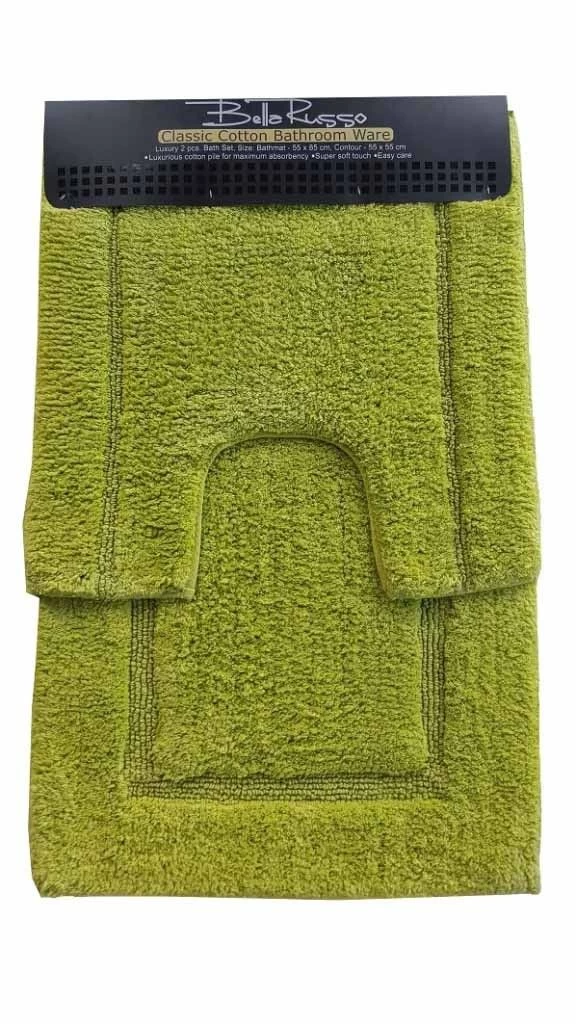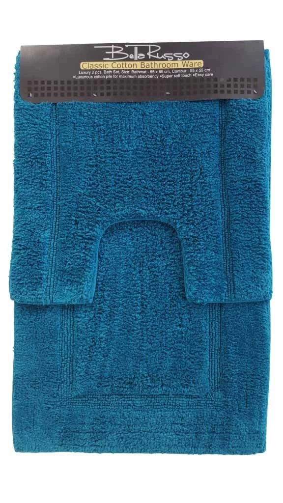 2200 GSM 2 piece 100% Cotton Bath Mat & Contour pedestal set with solid colour tone design and classic border adds elegance to every bath. Easy wash care.