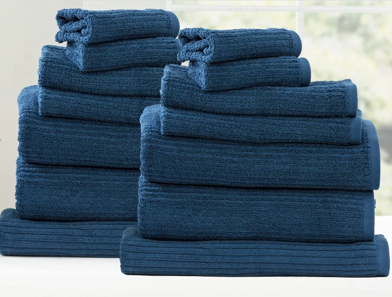 This ribbed towel is available in a palette of contemporary colours from neutrals to statement tones.