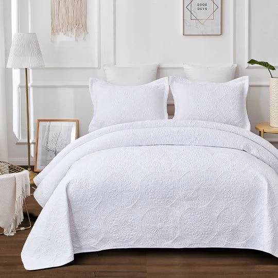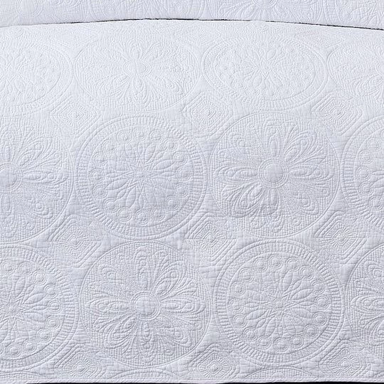Classic Quilts Antique White Bed Coverlet Set features a beautiful embossed crisp white cotton construction. Finished with a simple scalloped edge this coverlet will add a touch of charming style to any bedroom.