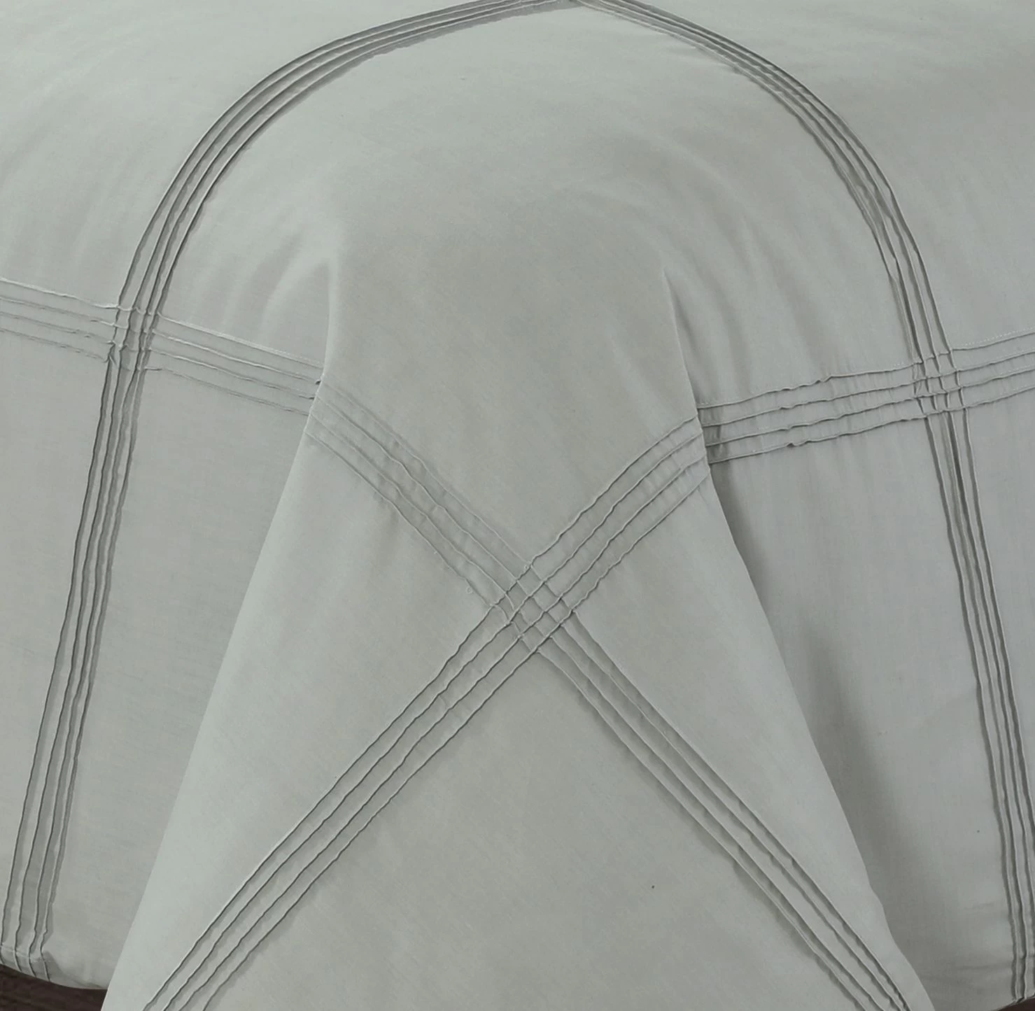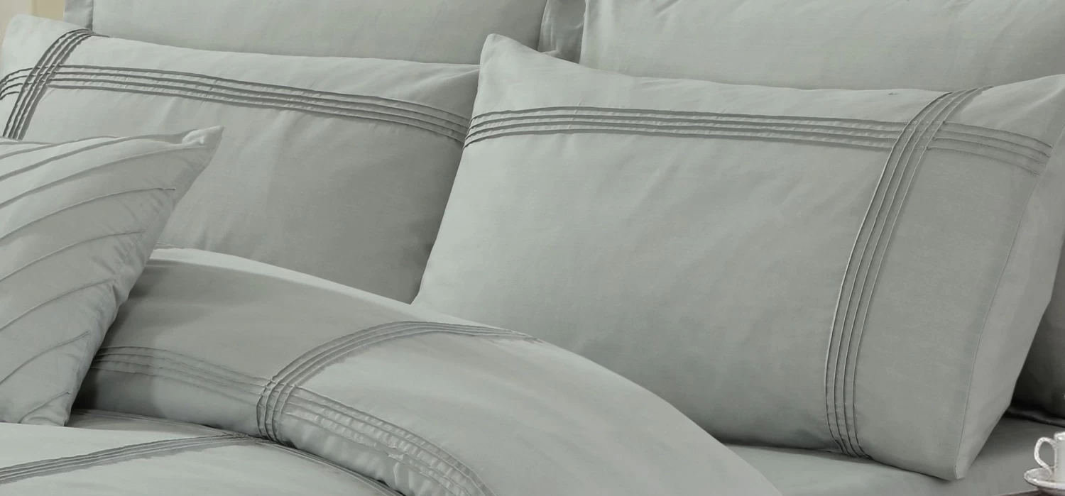 Give your bedroom a natural, clean look with this luxurious pintuck quilt cover set from Anfora. Made from cotton rich fabric, this silver grey quilt cover set features multiple parallel and vertical narrow tucks on both quilt cover and pillowcases.