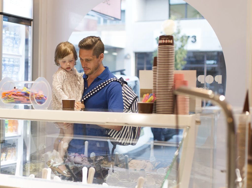 Use the long adjustable shoulder strap* to hang your OiOi bag over the handle bars of your stroller; this will help you check the weight of your baby bag and stop the bag from dropping while you attach the stroller straps.