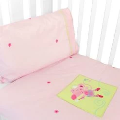 The Ballerina Mouse Cot Quilt Set will be a the perfect addition to make a little girl’s nursery, a special space. Included in the set is a universal size pillow case and a large plush all weather quilt with soft plush appliqué suitable for both standard and large cots. Manufactured using 100% cotton fabrics will be soft on baby’s skin keeping them cosy all year round. Additional accessories include bunny wraps, fleece cot blankets, knitted cot blankets and printed sheet sets.