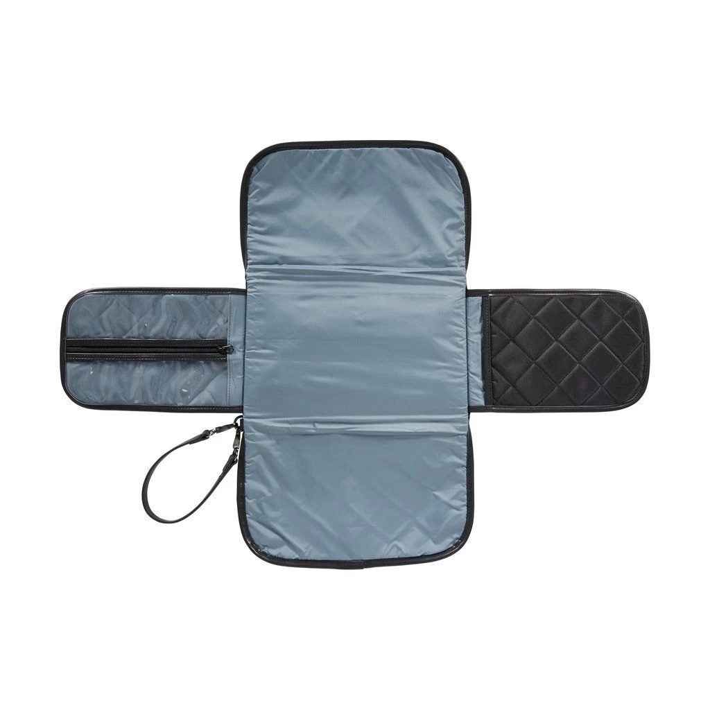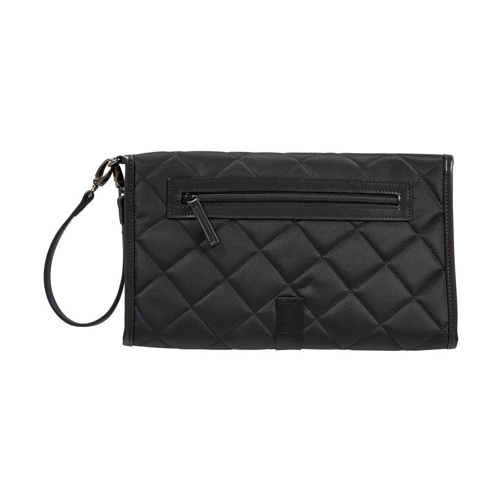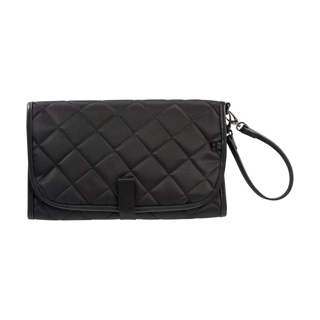Classic Black Quilt change mat clutch. Great for on the go. A generous and comfy pad for baby, sections for wipes and nappies/diapers. Zip pocket on back for personal things! Matches your OiOi Quilt Carry All and Stroller Organiser