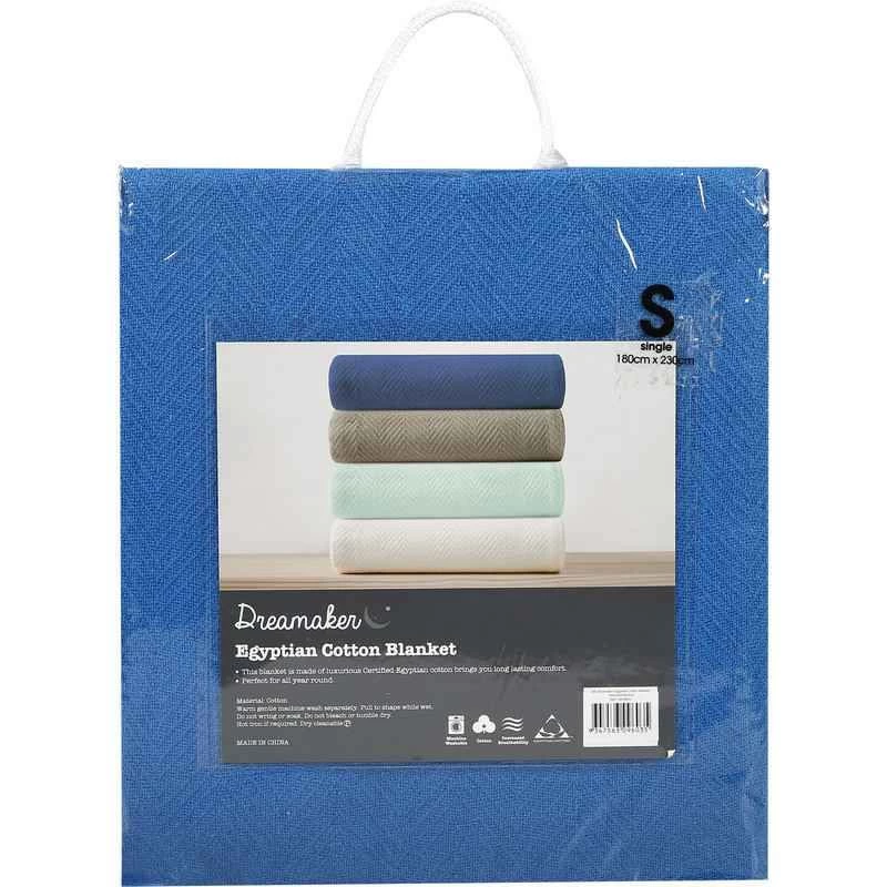 This cotton blanket is made of luxury Egyptian cotton to provide breathable with lightweight and brings you long lasting comfort. The Egyptian cotton blanket is perfect for all year round. The cotton blanket comes in queen size and blue colour. Order your cotton blanket today to experience a fresh relaxing night sleep with this soft, comfortable cotton blanket.