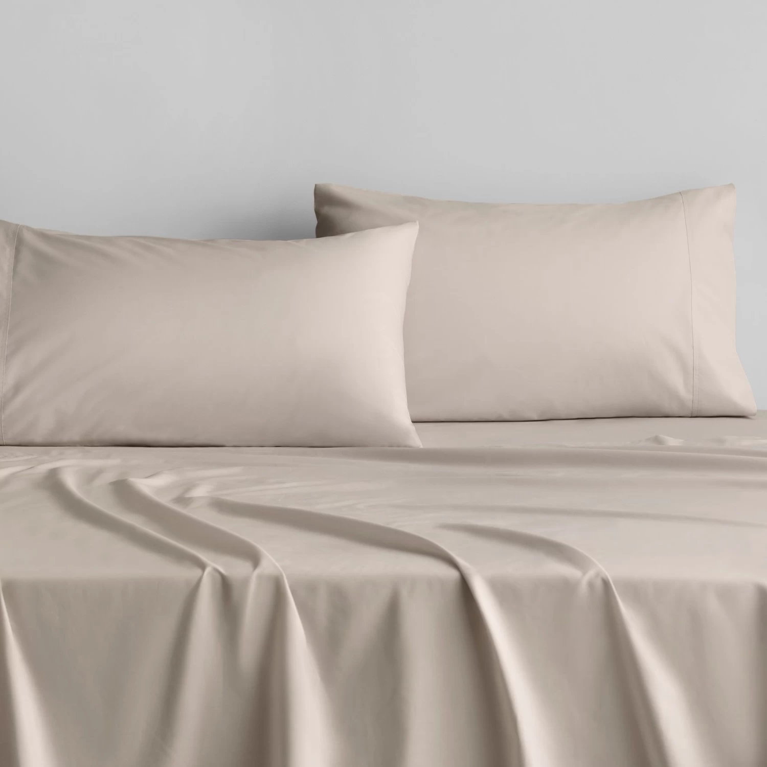 The Byren Sheet Set is set to become a firm favourite. A thoughtful choice, it combines crisp cotton percale with innovative TENCEL™ Lyocell fibres. Lightweight with a cool feel, this sheet set is breathable and suitable for year-round use. Easy care and fast drying, it offers everyday luxury. Includes 1 flat sheet, 1 fitted sheet and 2 pillowcases