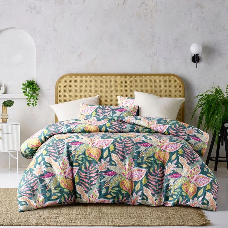 Layer your bed with our stylish Carmila Printed Linen Cotton Quilt Cover Set by Accessorize. This quilt cover set is a dream to sleep in all year round. It features botanical design printed in nature colour tones of white, pink, teal, green, red, blue, yellow, and orange that is perfect to give your master bedroom a refreshing look. It is made from quality and soft touch Linen Cotton fabric with softness you can enjoy all night long.