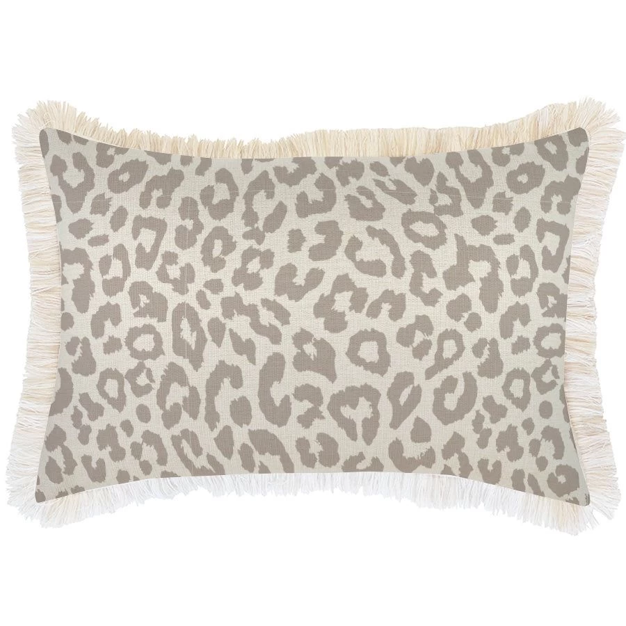 - Soft fringe trim along the edge of the cushion