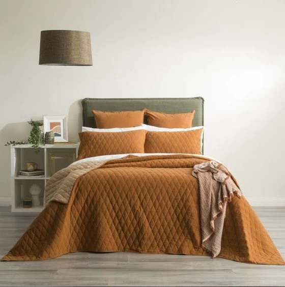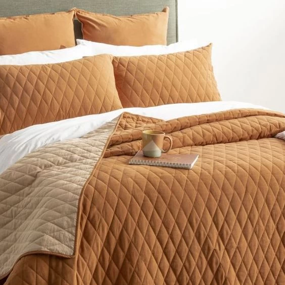 Reversible quilted coverlet has the ability to use 2 colours in one and drape ever so perfectly