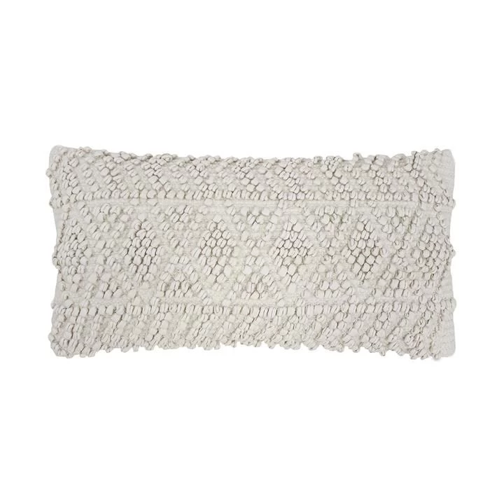 A super textural cushion featuring diamond and triangle shapes that have been woven and looped to create high and low piles. Made from cotton, with a plain woven cotton reverse, this long rectangle cushion will work well sitting on top of a bed or for cosying up on the couch. Includes removable fill.