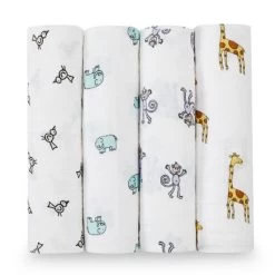 four 120cm x 120cm pre-washed 100% cotton muslin swaddles