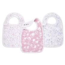 includes 3 pre-washed 9” x 12” (23cm x 30.5cm) 100% cotton muslin snap bibs