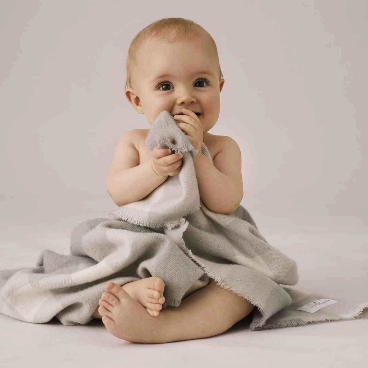 Crafted in 100% merino wool, the Murphy pram blanket is sure to keep your little one cosy and warm. Woven with soft shades of grey in a timeless check design, this blanket is the perfect addition to your pram or nursery.