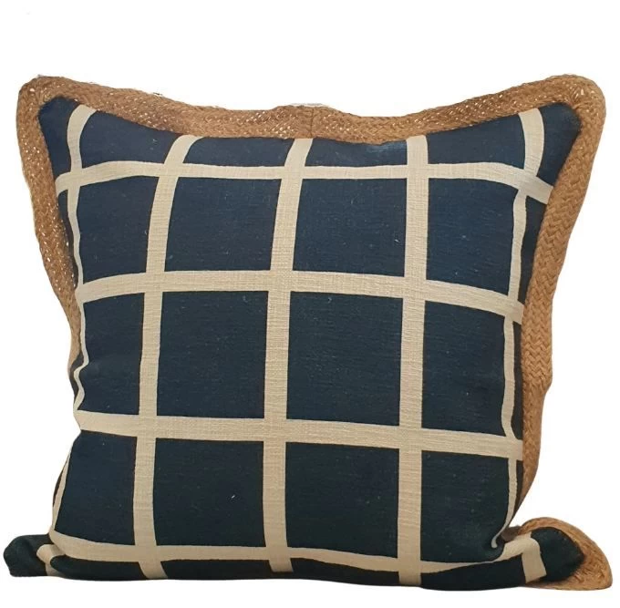 Navy Chequered Cotton & Jute Cushion Cover By Kolka