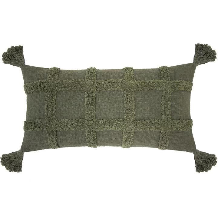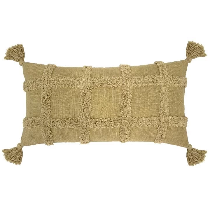 A soft cushion with great texture, fun tassels and a stylish pattern. The Percy cushion features patches of tufting that form a check pattern across the surface. Available in a range of colours while stocks last, with coordinating throws also available. Includes cushion fill.