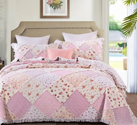 Classic Quilts Sarah Rose Queen Bed Coverlet Set features a patchwork of florals in gorgeous pink tones. Finished with a frilled flange this coverlet will add a touch of shabby chic design to any bedroom.
