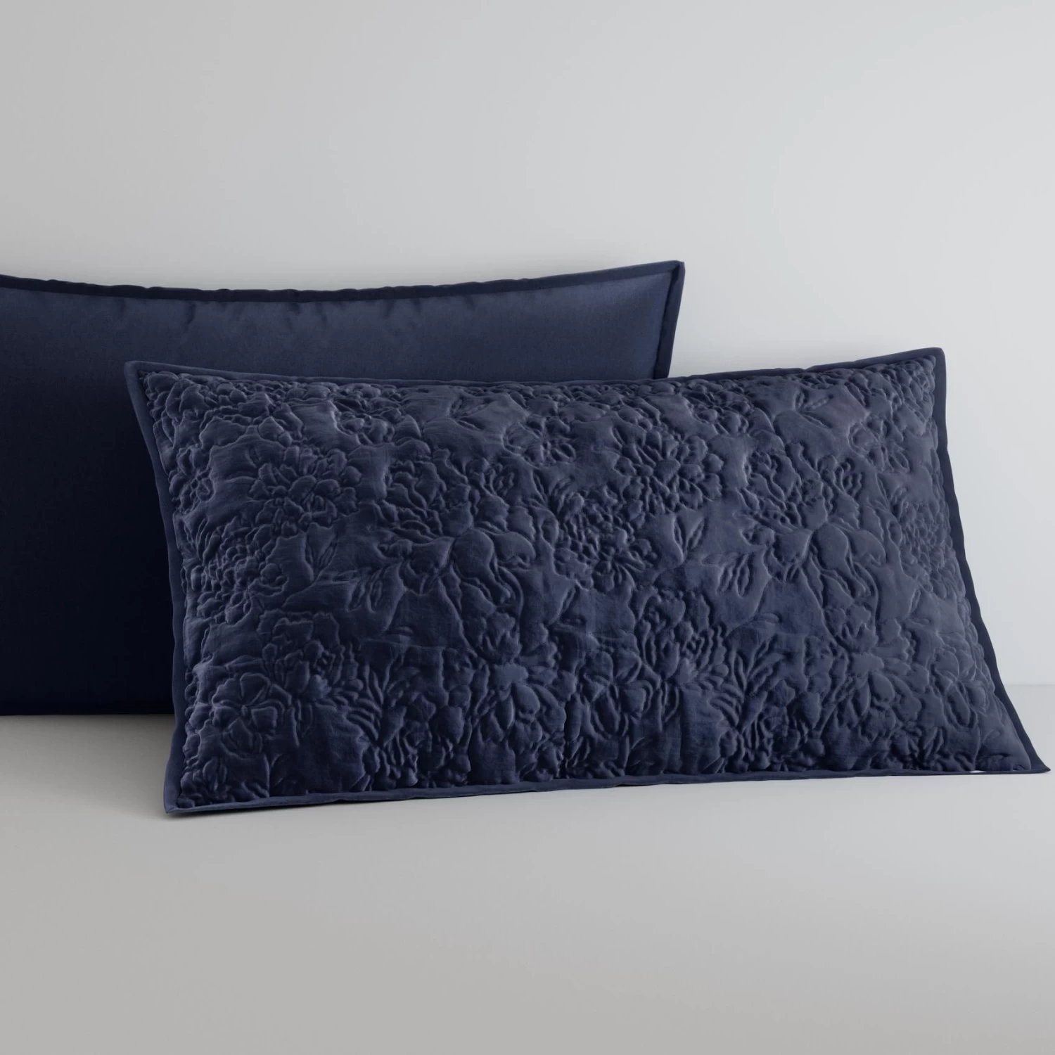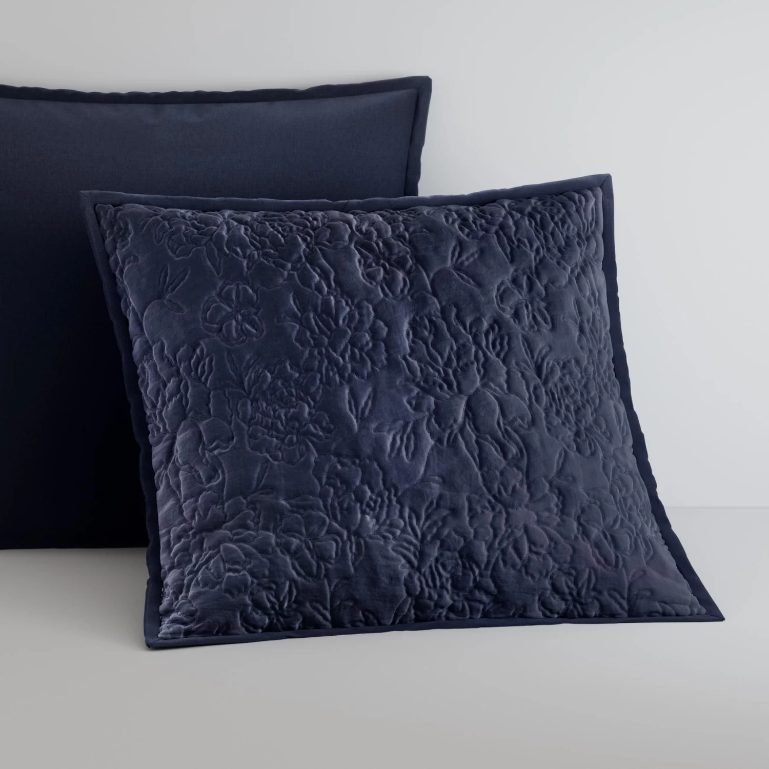 Dress your bed with our Valencia Collection, and its striking design. Florals and foliage are embroidered across velvet, for a three-dimensional, textural effect. Finished with a plain dye reverse. Crafted from 100% cotton, with recycled polyester wadding.